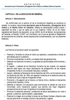 * Asociación para la Promoción y Divulgación de la Cultura y el Idioma Chino en Canarias * Asociación de estudiantes y padres de estudiantes, y simpatizantes de la cultura China en general * Nuestra asociación nace a raíz de la llegada de un colectivo de ciudadanos chinos a las islas canarias, con intención de integrarse y al mismo tiempo promover la cultura y las costumbres chinas, con la idea de que estas sean conocidas, por parte de la sociedad canaria. * Después de una serie de años, el colectivo chino se puede decir que en cierta medida se encuentra integrado en la sociedad canaria, ya que parte de este ha nacido ya en las islas canarias. * 西班牙加那利中国文化促进会 * 一个由学生、学生家长和对中国文化的支持者组成的综合性协会 * 我们的协会是由居住在加那利群岛的中国公民共同创建的,在融入到西班牙加那利群岛当地生活的同时,旨在弘扬中国文化和风俗,并希望西方社会能够了解中国悠久的历史。 * 经过几代人的努力,可以说华人社团在一定程度上融入了加那利群岛的当地社会中,特别是其中一部分的中国人的后代出生在加那利群岛。