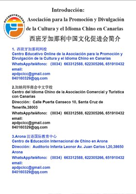 Asociación para la Promoción y Divulgación de la Cultura y el Idioma Chino en Canarias – 西班牙加那利中国文化促进会